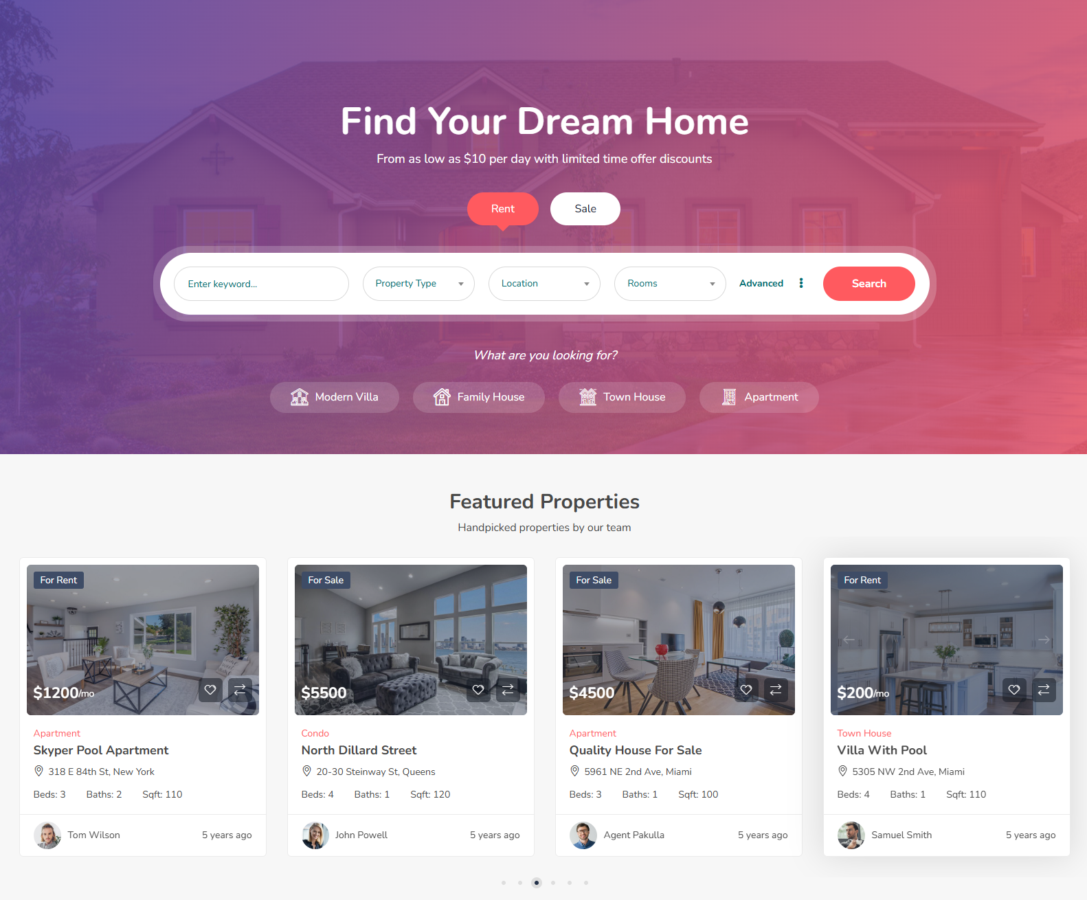 Motyw jest bardzo skalowalny i można go używać zarówno w dużych portalach nieruchomości, jak i małych agencjach, za pomocą zaledwie kilku kliknięć. Potrzebujesz niestandardowych zmian na swojej stronie? Żaden problem. Wszystko jest zintegrowane z akcjami i można je łatwo usunąć lub dodać.