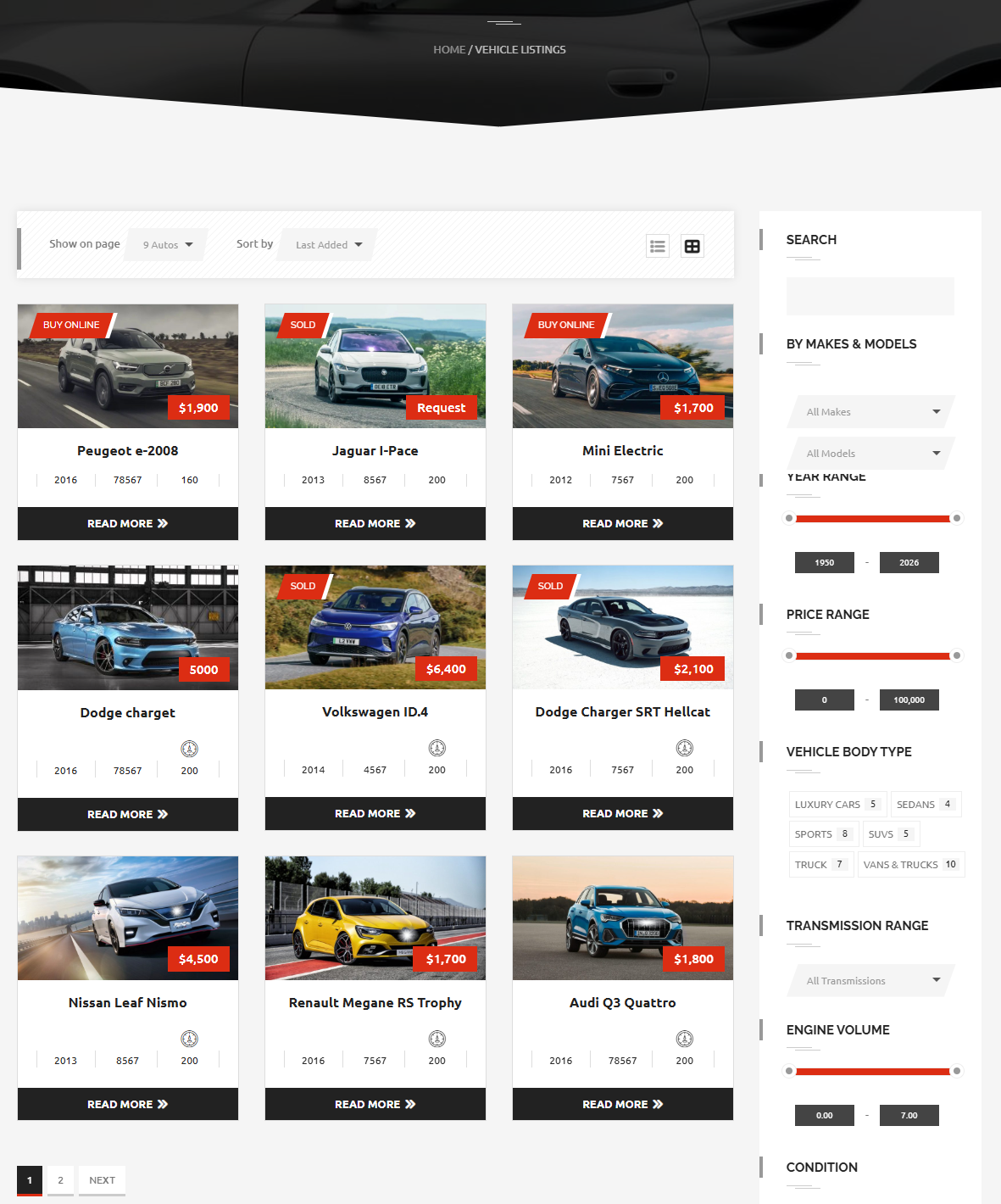 Ten nowoczesny motyw WordPress to prawdziwa rewolucja dla dealerów samochodowych i wypożyczalni pojazdów, łącząc elegancję z wyjątkową funkcjonalnością. Jego klarowny, intuicyjny design zapewnia nie tylko wygodę obsługi, ale także przyciąga uwagę potencjalnych klientów, sprawiając, że Twoja witryna wyróżnia się na tle konkurencji. Idealny do prezentacji flot, ofert i usług, ten motyw zamienia zwykłą stronę w skuteczne narzędzie marketingowe, zwiększając zaufanie i zainteresowanie. Dzięki szerokiej gamie kluczowych funkcji, to więcej niż tylko kolejny szablon – to klucz do sukcesu Twojego biznesu motoryzacyjnego.