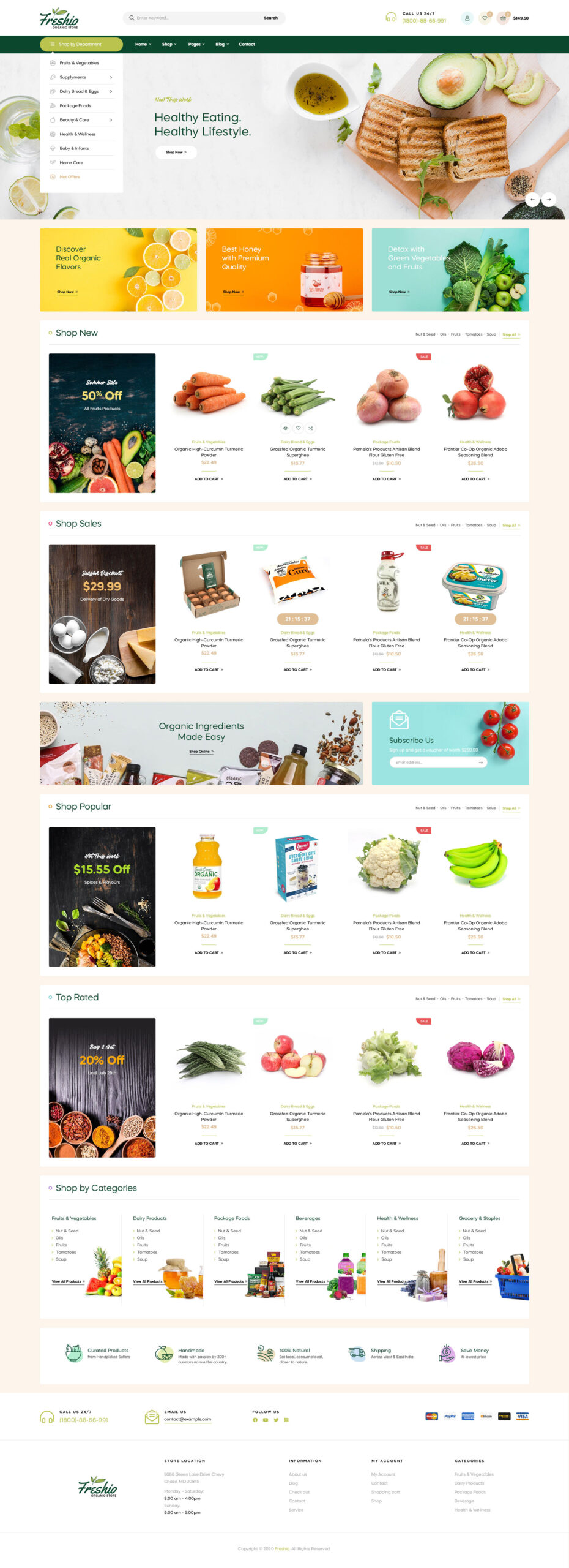 To piękny, nowoczesny i responsywny motyw dla sklepów z ekologiczną żywnością . Idealnie pasuje do każdej witryny związanej z ekologiczną żywnością, takiej jak sklep ze świeżą żywnością, targowisko, sklep spożywczy, sklep internetowy z ekologiczną żywnością, supermarket i sklep spożywczy online . Idealnie nadaje się również do sklepów z produktami ekologicznymi, świeżego pieczywa, piekarni, a nawet sklepów z naturalnymi kosmetykami.