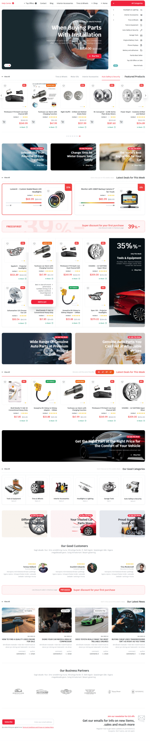 Motyw dla sklepów z częściami samochodowymi i narzędziami eCommerce to właśnie to, czego potrzebujesz. Motyw Partdo pomoże Ci stworzyć własny sklep z częściami samochodowymi, częściami do telefonów, narzędziami, elektroniką, oponami, sklep z częściami samochodowymi, sklep motoryzacyjny, platformę sprzedażową, platformę wielodostawczą.